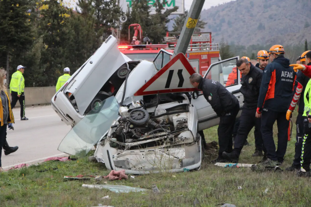 ARAÇ KONTROLDEN ÇIKARAK DİREĞE ÇARPTI