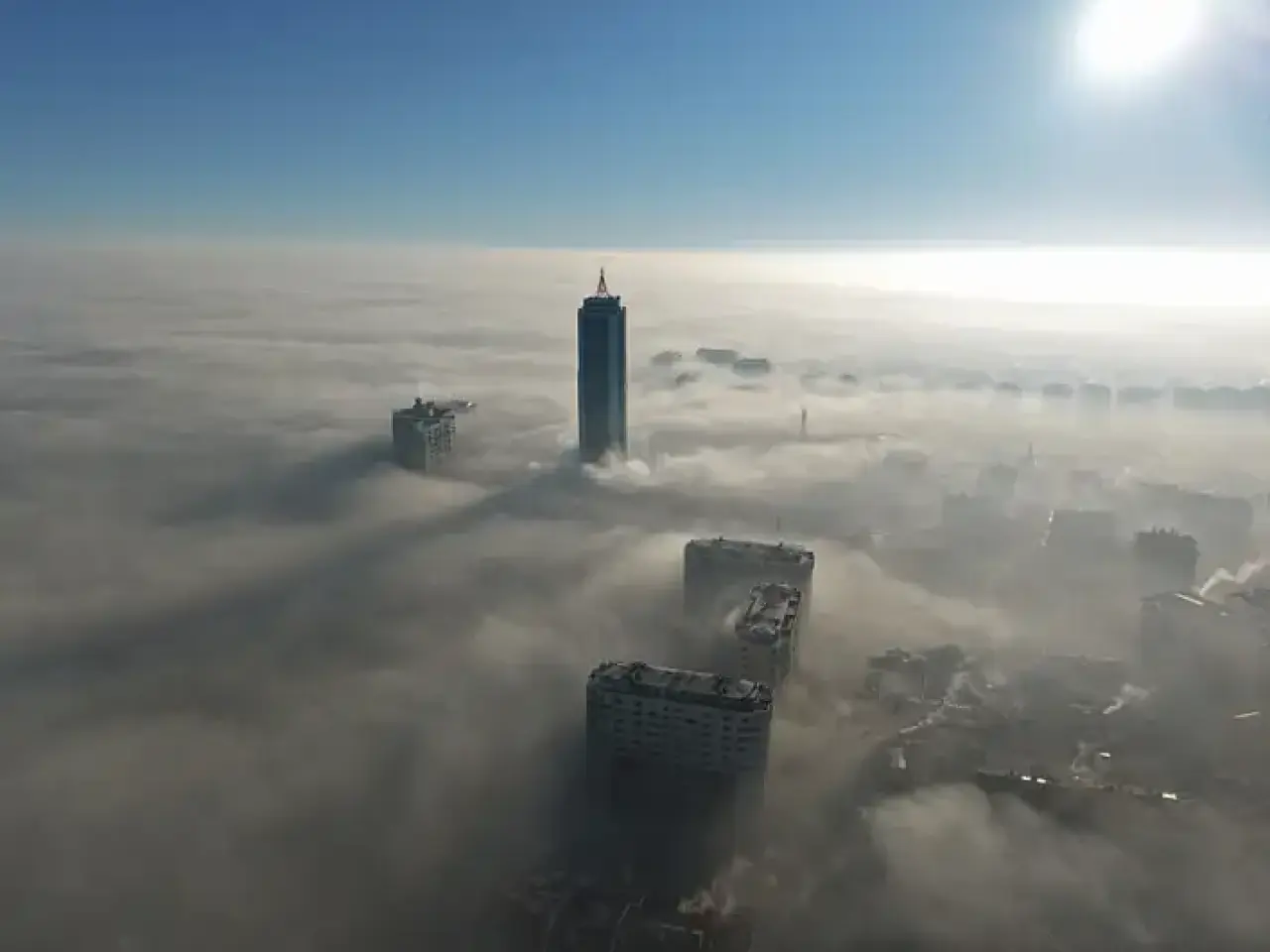 Konya'da yoğun sis etkisini sürdürürken, havadan çekilen dron görüntüleri şehrin üzerine çöken bu beyaz örtünün büyüleyici güzelliğini tüm çıplaklığıyla gözler önüne serdi. Sis denizinde kaybolan binaların gökyüzünden görünümü, eşsiz ve seyri doyumsuz karelerin ortaya çıkmasını sağladı.